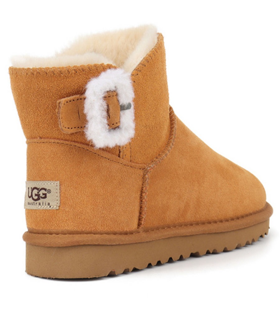 UGG Mini Sunny – מגפי חורף נמוכים בעיצוב אבזם פרווה אופנתי