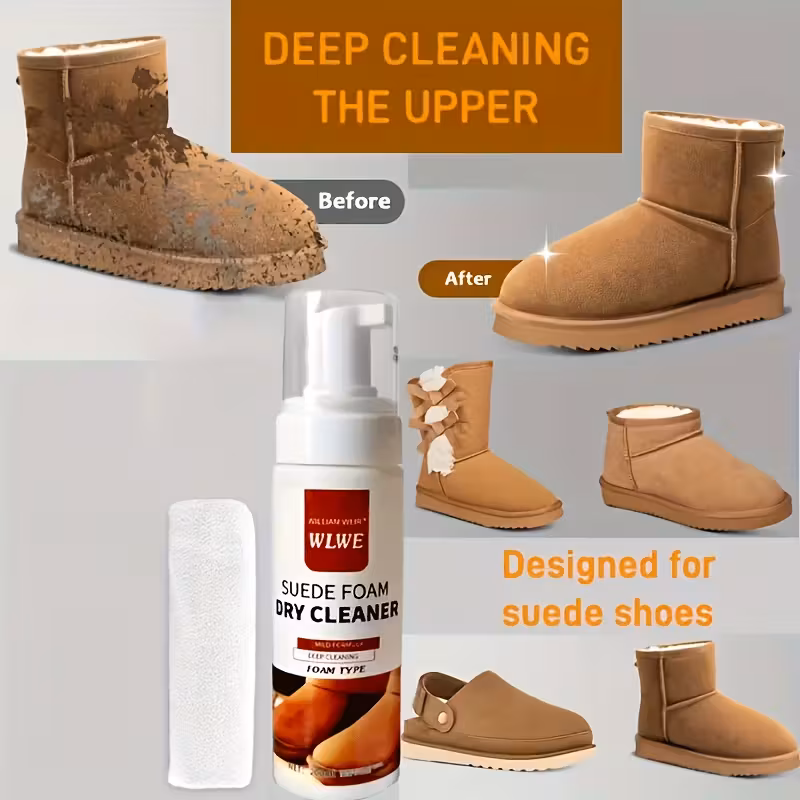 קיט ניקוי מקצועי לנעלי חורף, מגפי זמש ונעלי בד. פורמולת קצף מרוכזת מסירה