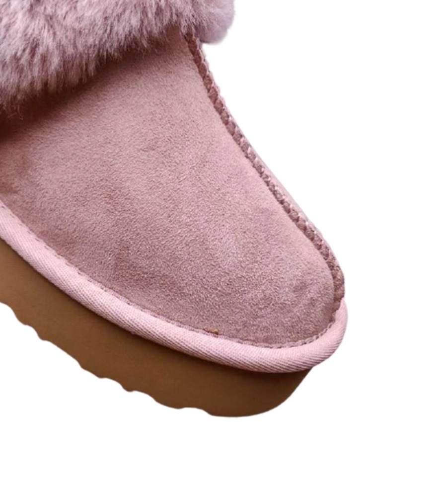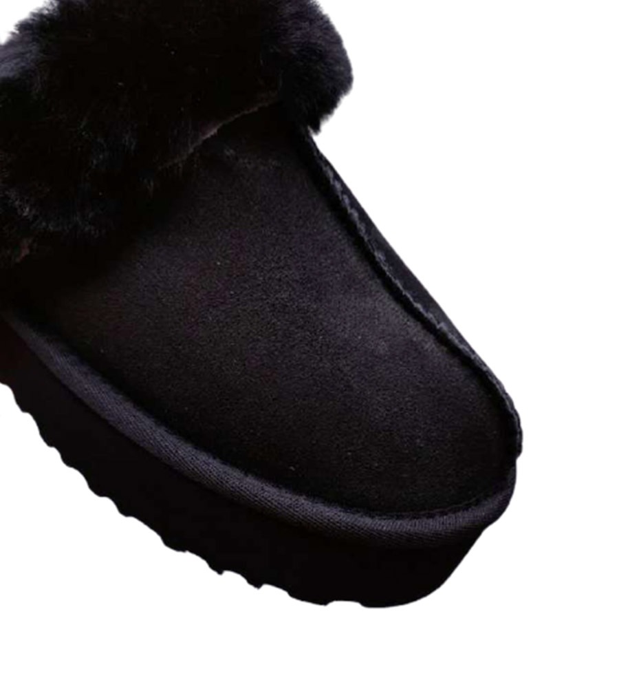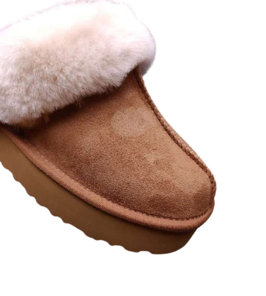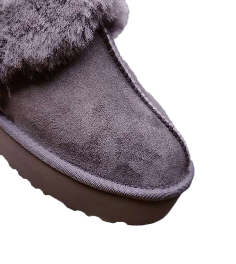 הדגם עשוי זמש רך ונעים למגע, עם ריפוד פנימי מפרווה סינתטית מחממת וסוליה גמישה לדריכה יציבה בבית או מחוץ לבית.