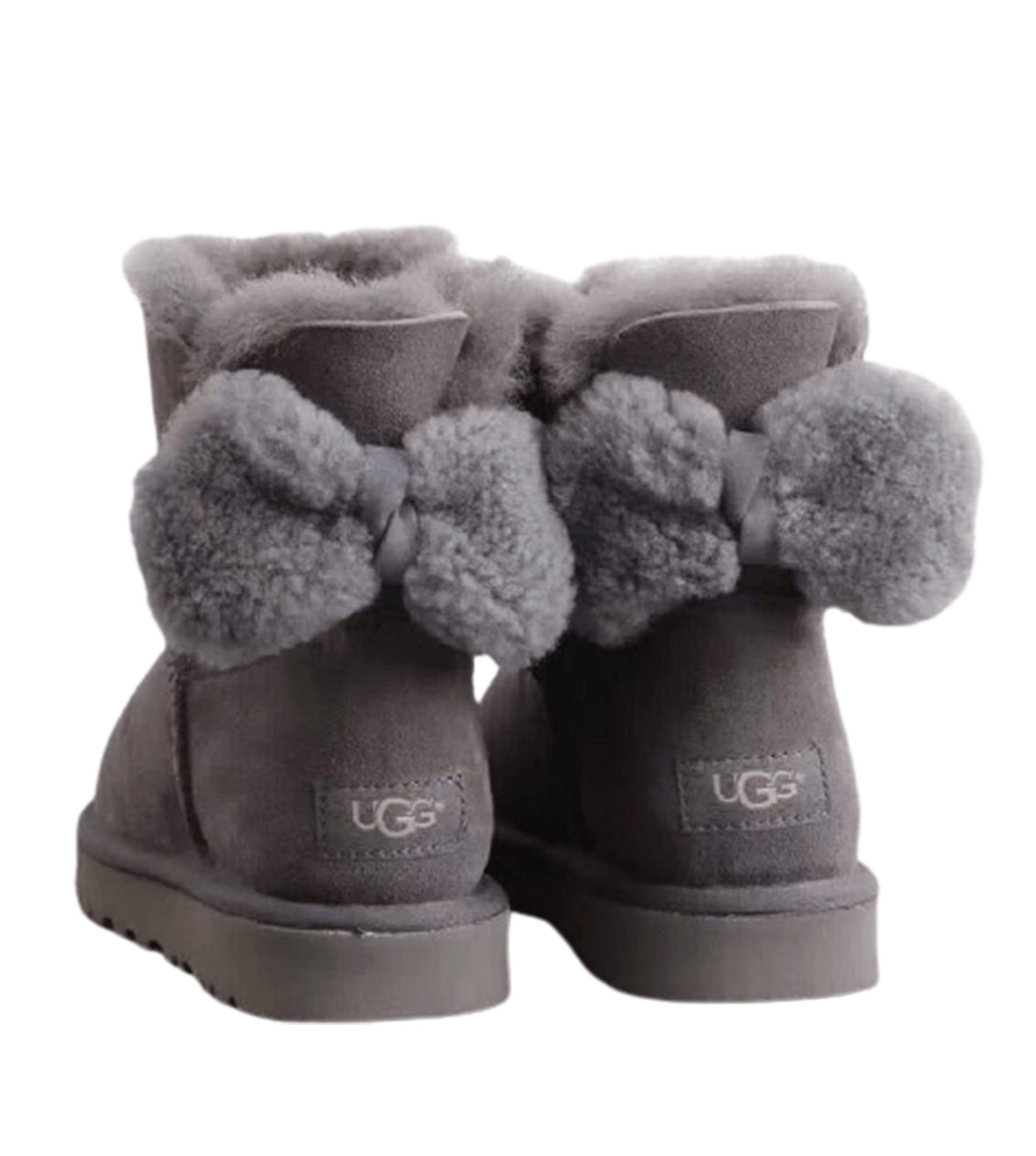 UGG Classic Short Boot Papillon – מגפי האג קצרות לנשים בעיצוב חורפי ייחודי עם פונפונים כפולים מאחור, המשלבות נוחות מושלמת עם מראה אלגנטי ונשי.