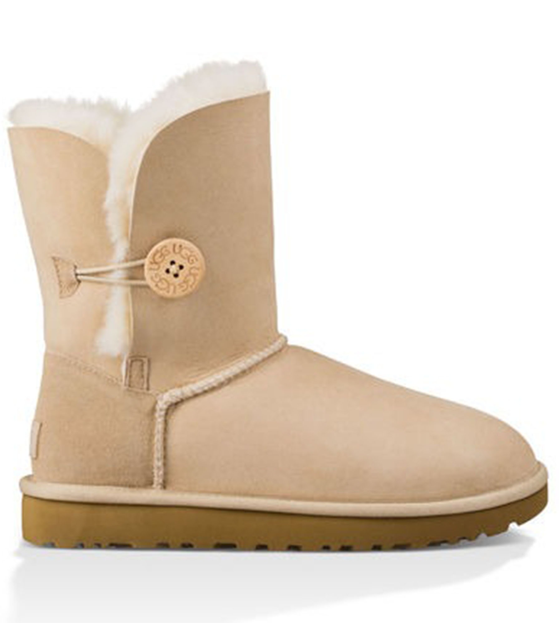 UGG Bailey Button Short – מגפי חורף קלאסיים לנשים בעיצוב אלגנטי עם כפתור צד ופרווה פנימית מחממת.